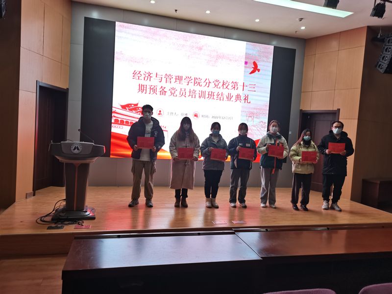 12月7日,经济与管理学院分党校第十三期预备党员培训班结业式在C座七楼报告厅举行,本期培训班班主任徐博和全体学员参加。