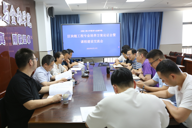 6月13日,为进一步优化区块链工程专业人才培养体系,促进新兴专业蓬勃发展,学院特邀计算机与信息学院副院长刘涛、院长助理严楠以及相关课程负责人来我院进行指导交流。本次会议由学院党委副书记、院长吴小太主持,副院长张培雨以及区块链工程专业部分骨干教师参加。