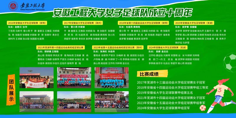 据悉,自2015年建队以来,我校女子足球队以坚韧不拔的毅力完成从白手起家到省内劲旅的蜕变。十年磨一剑,球队在省市级赛事中镌刻下璀璨勋章,先后荣获芜湖市第十三届运动会大学组女足桂冠、安徽省第十四届运动会大学组足球赛甲组三等奖、安徽省大学生足球联赛甲组五强、安徽省第十五届运动会季军与芜湖市第十四届运动会冠军双料荣誉、安徽省校园足球联赛(大学)甲组亚军。