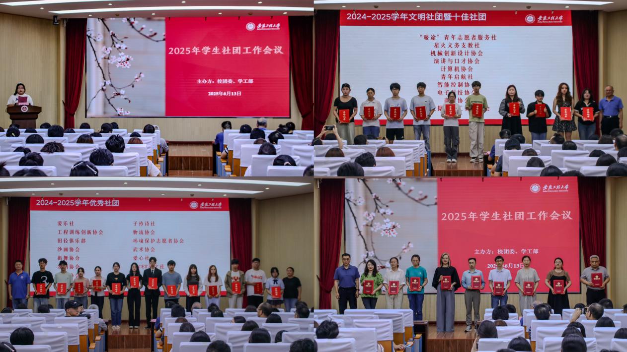 会上,对2024年度校级文明社团暨十佳社团、优秀社团、优秀社团指导教师进行了表彰。汇报了2024至2025学年学生社团工作,介绍了学院在社团建设与管理方面的成功做法,交流了教师在指导社团过程中贯彻的育人理念与具体实践,分享了社团思政项目的实施经验,总结了社团参加“西门子杯”中国智能制造挑战赛的历程与经验。
