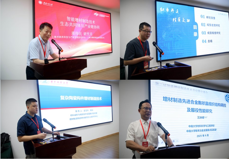 上海市纳米科技与产业发展促进中心主任、上海增材制造协会副秘书长周伟民研究员,华中科技大学史玉升教授团队,中国科学技术大学梁海弋教授,中南大学汪冰峰教授,安徽师范大学孙益民教授,安徽机电职业技术学院党委委员、副校长姜绳等分别围绕“增材制造技术方面的最新研究成果、科技创新如何引领产业创新和产业发展以及全国增材制造行业产教融合共同体建设工作进展”作报告。陆军装甲兵学院装备保障与再制造系姚巨坤教授、上海交通大学李祥副教授、江苏科技大学海洋装备研究院增材制造技术研发中心丁红瑜博士、国家智能铸造产业创新中心唐晋升副总经理、铜陵学院机械工程学院副院长王东生教授等分别围绕“增材制造应用研究进展、创新产教融合模式、校企协同育人”等进行了深入探讨。各高校、企业代表围绕JDACE系统、桌面微型SLM金属3D打印设备、陶瓷支架、赋能机器人快速成型等在增材智造领域的应用作产业信息交流与信息发布报告。
