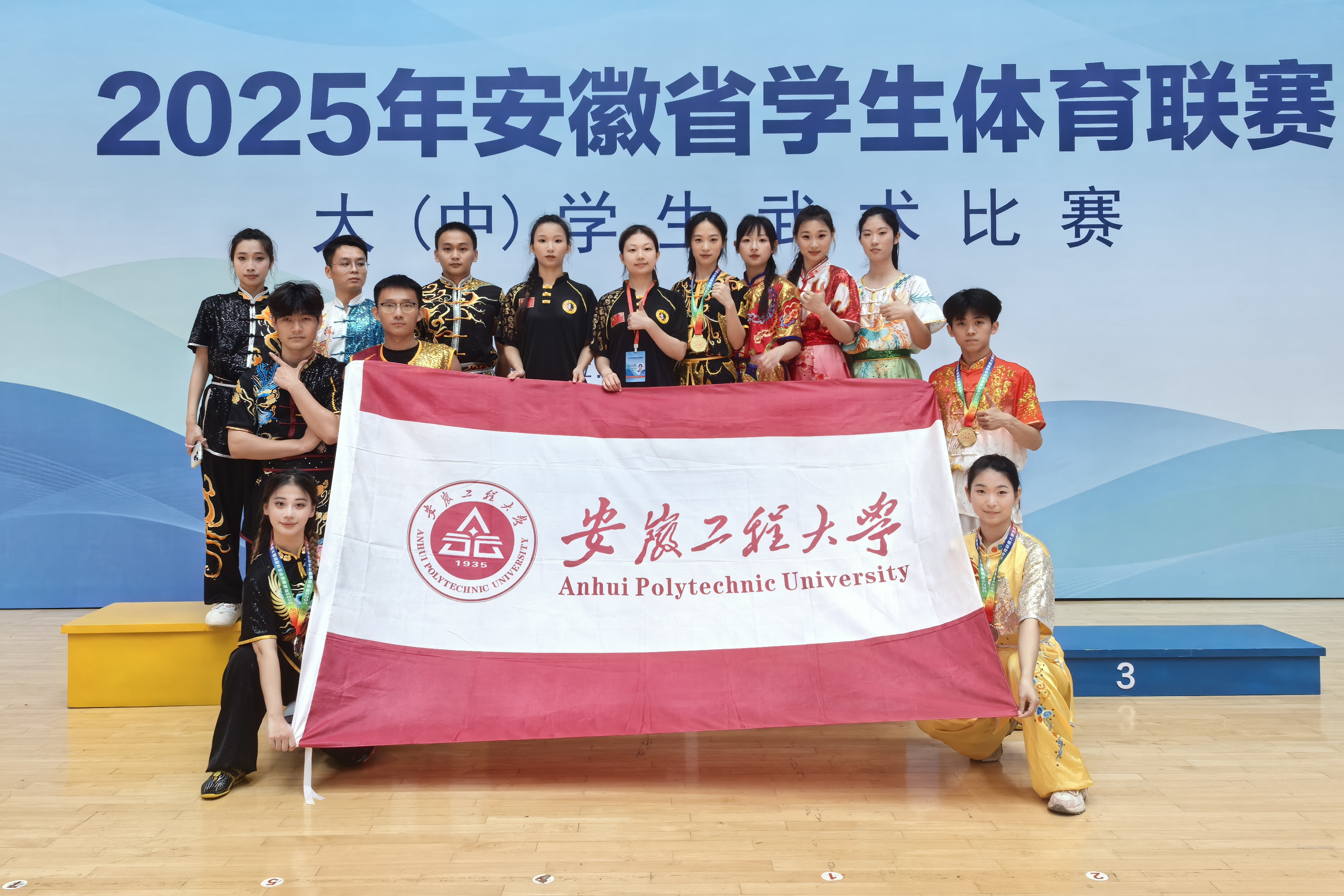 本网讯 6月20日,由安徽省教育厅、安徽省体育局主办的2025年安徽省学生体育联赛大学生武术比赛在宿州学院落幕。来自全省44所高校的大学生运动员汇聚一堂,以武会友。经过激烈角逐,我校学子斩获2金1银3铜和多项前八名的好成绩。