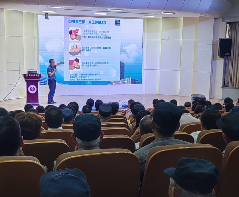 安徽省皖南康复医院、芜湖市第五人民医院急救科主任侯捷副主任医师应邀主讲。他通过生动详实的课件和现场实操演示,为大家科普了心肺复苏术、AED使用、海姆立克急救法、烫伤和创伤的急救措施。他表示,通过学习掌握应急急救技能,遇到突发意外事件,能够及时正确处置患者,并拨打120急救电话,为患者得到有效救治争取宝贵时间。