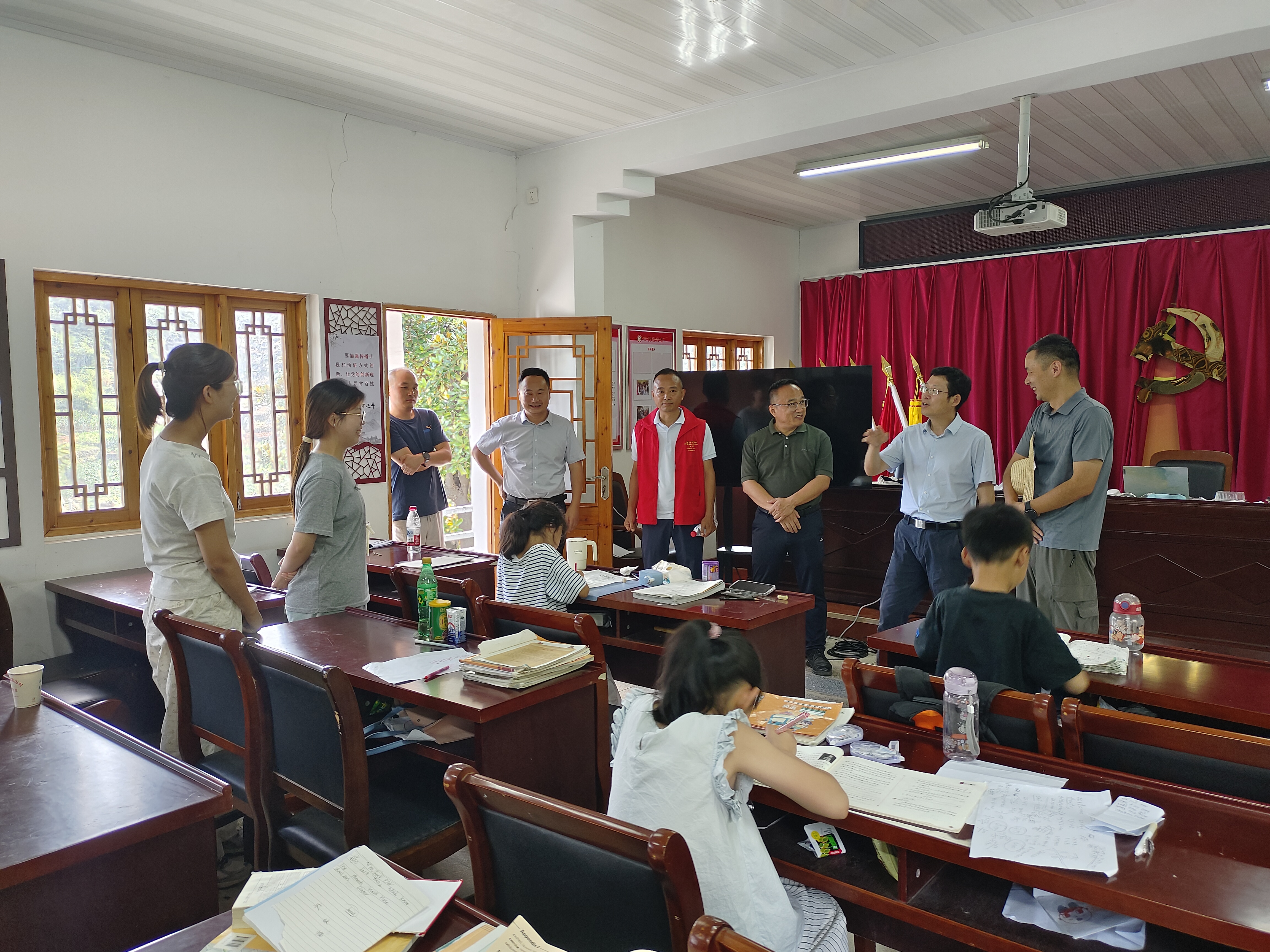 程双四走进由校团委、人文学院、驻村工作队与龙山村共同打造的“龙山爱心学堂”,看望正在开展爱心支教的青年大学生,了解支教学生的学习和生活情况,他要求,驻村工作队要为实践团队成员提供必要保障,确保实践活动安全有序开展,勉励参加社会实践师生要珍惜深入基层锻炼的机会,在实践中增长才干、锤炼品格,以专业学识服务基层实践,彰显新时代大学生风采。要及时总结经验做法,持续打造社会实践品牌,发挥示范引领作用。他叮嘱大家要注意防暑降温,做好安全防护,在确保安全的前提下扎实开展好社会实践活动,真正在服务基层中受教育、长才干、作贡献。