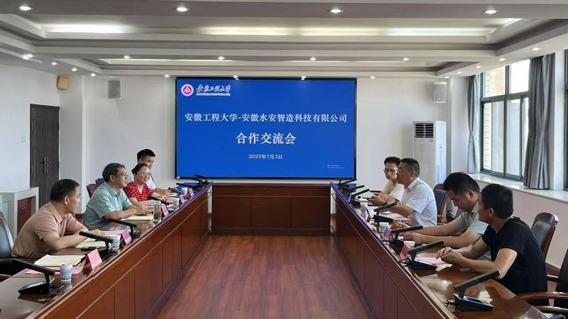 本网讯  7月3日,安徽水安智造科技有限公司总经理王龙一行来校调研交流并开展项目推进工作。安徽省人大常委会委员、九三学社安徽省委会常委、我校副校长王成军出席调研交流会,科技处、机械与汽车工程学院相关负责人参加。