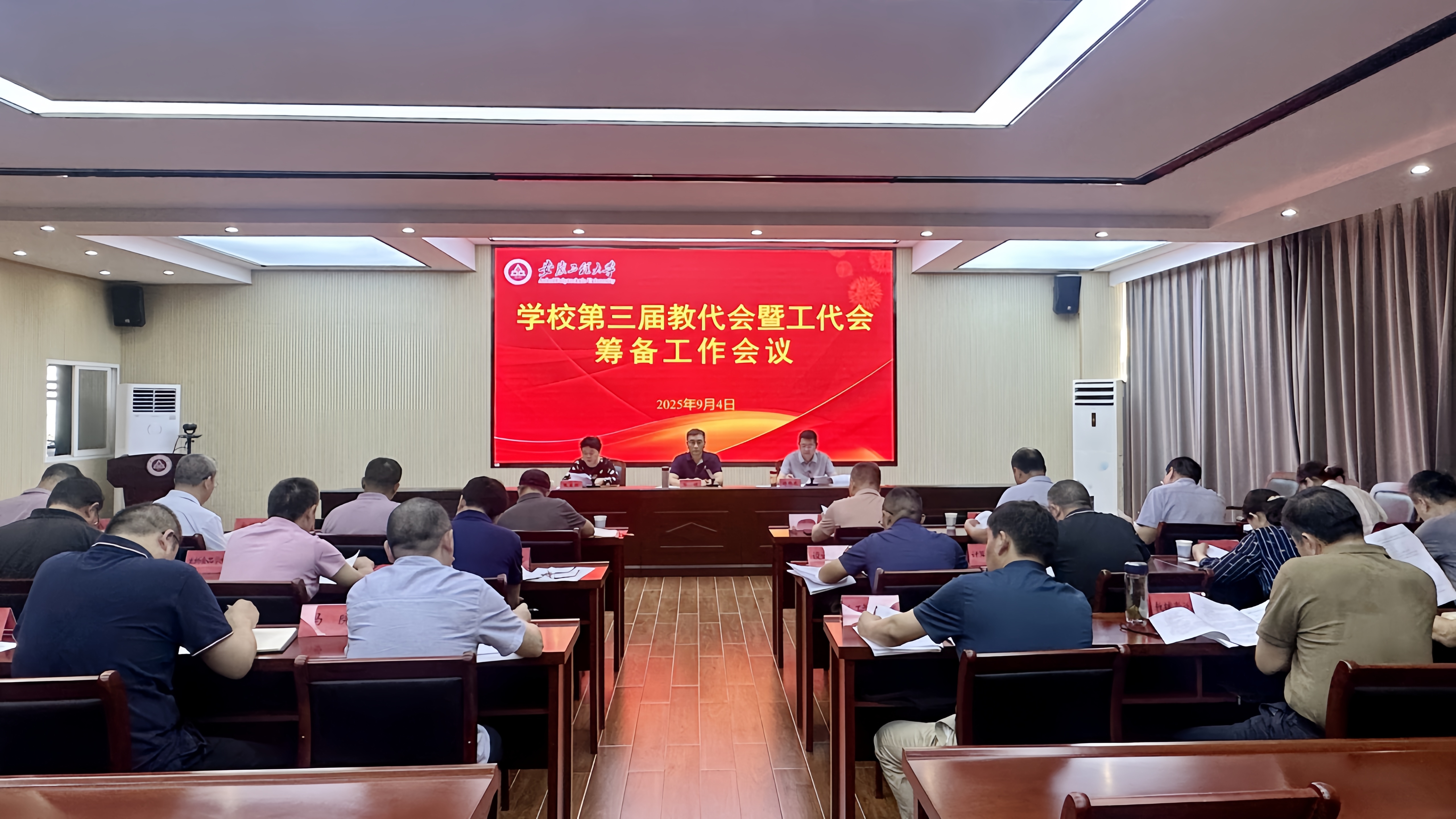 本网讯 9月4日,学校第三届教代会暨工代会筹备工作会议在A座1314会议室召开。学校党委副书记郑健主持会议,各二级党组织书记、教代会暨工代会筹委会委员、筹备工作组组长参加。