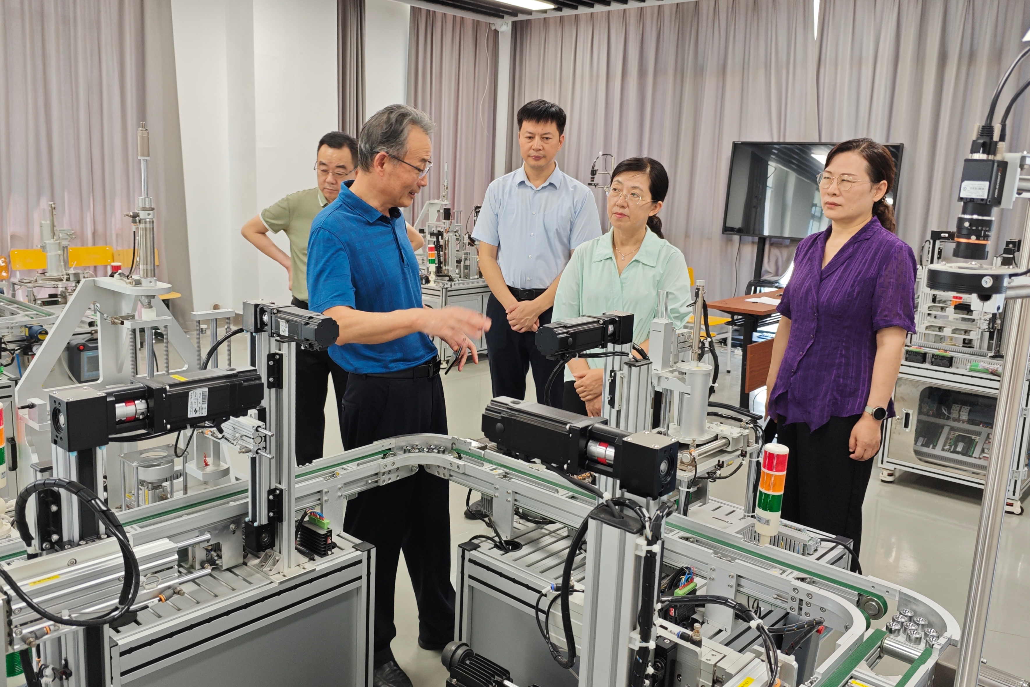 调研组一行先后来到机器人现代产业学院、安徽高等研究院芜湖分院,详细了解学校服务地方发展基本情况、学校与地方产学研互动、专业结构与产业需求对接等情况,对学校在服务地方经济社会发展、产教融合、校企合作等方面的成效给予高度评价。